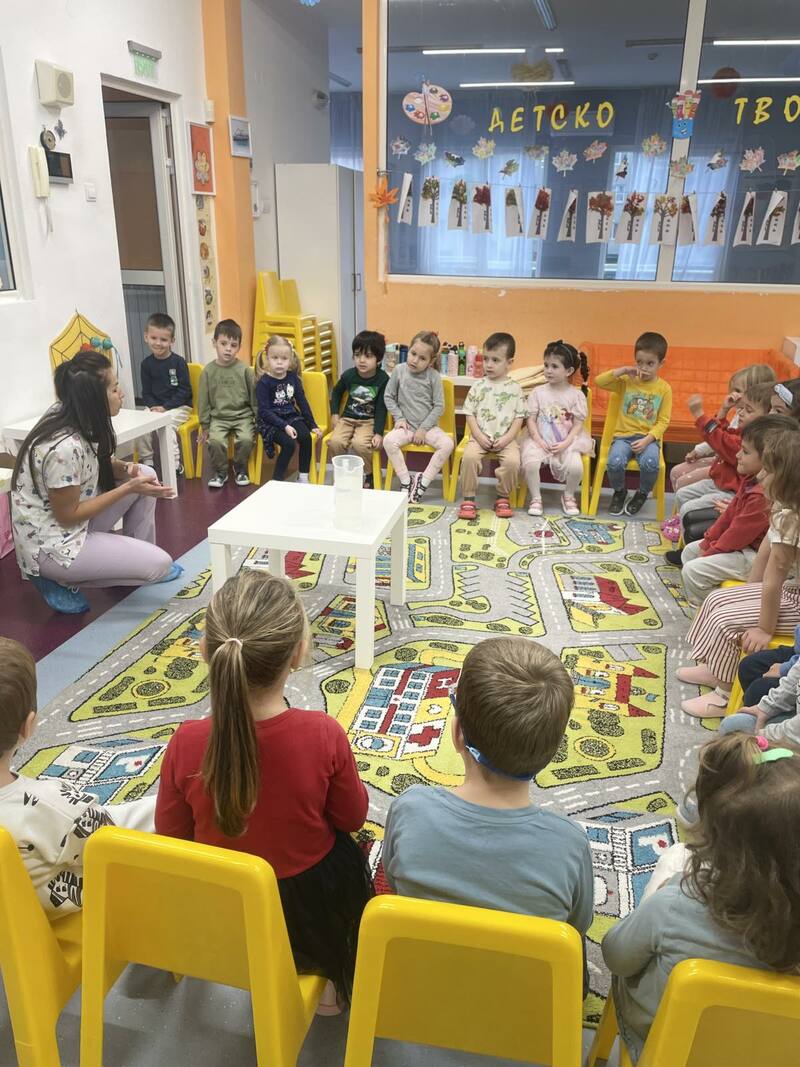 В седмица на професиите във II Б група „Калинка“ с гост майката на Адам - Вили, която е клиничен лаборант