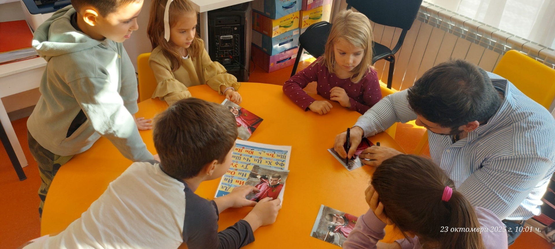 Децата слушаха с вълнение неговите истории за актьорството, пътуванията, които сбъдват мечти. И за финал всяко дете получи лична снимка с автограф!