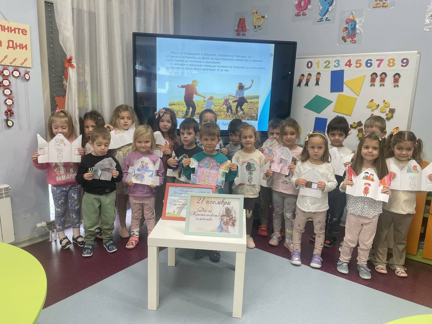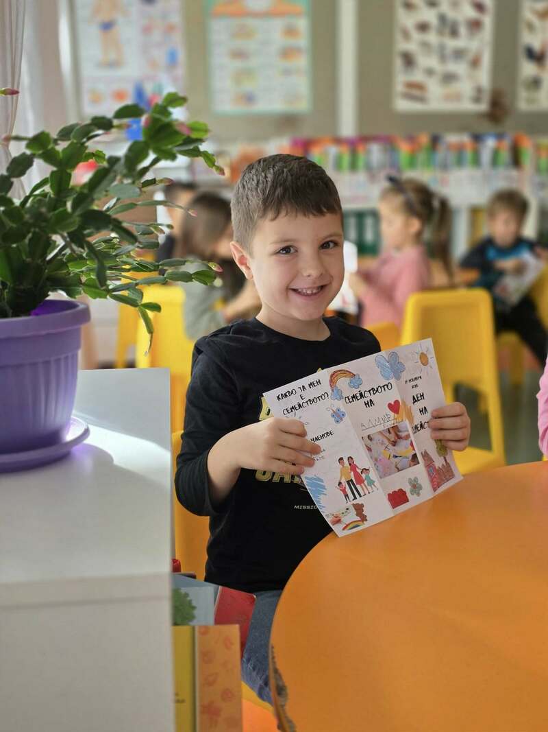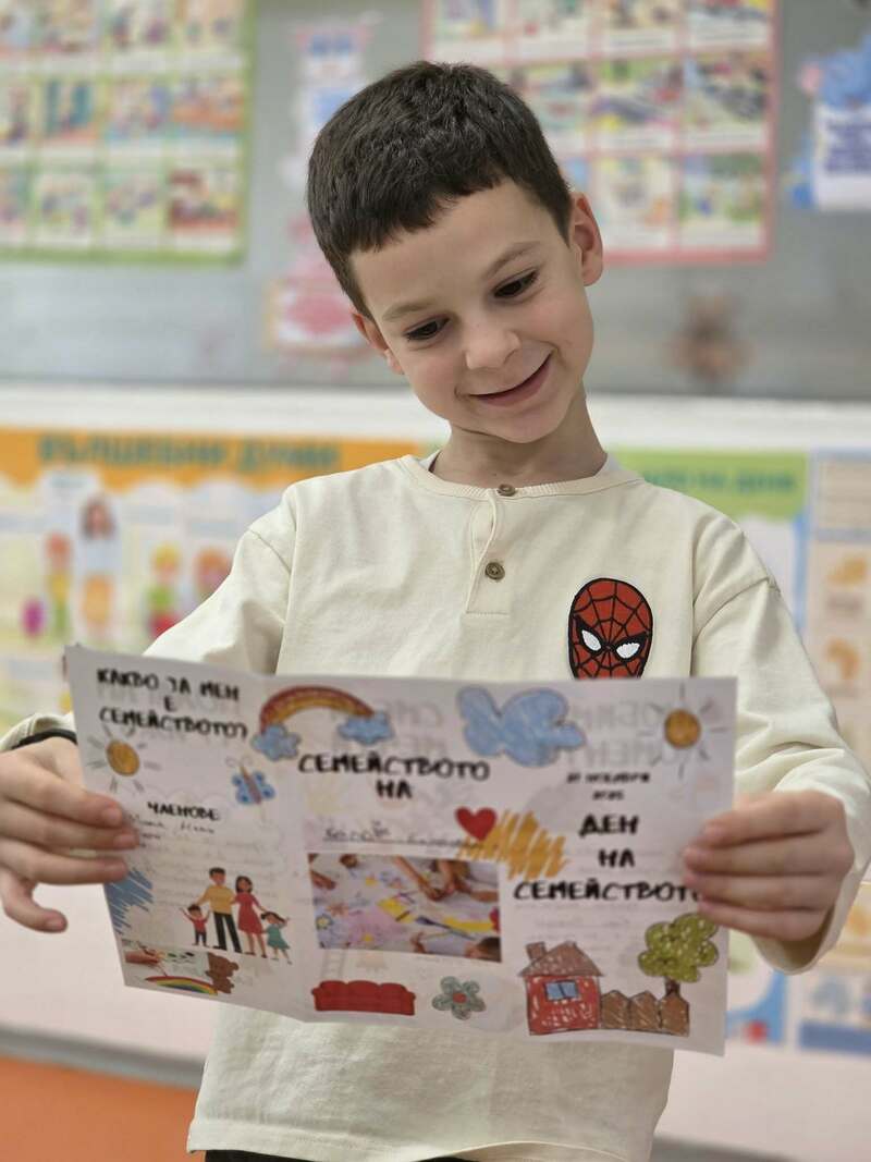 Разговаряхме с децата за това какво означава семейството – за обичта между близките, за уважението към по-големите, за грижата един към друг и за малките добрини, които правят света по-усмихнат. Децата споделиха свои мисли и преживявания, разказаха за любимите семейни моменти и за традициите, които пазите у дома. Гледахме презентация и изработихме тематични рисунки, които да напомнят за красотата на семейната връзка.