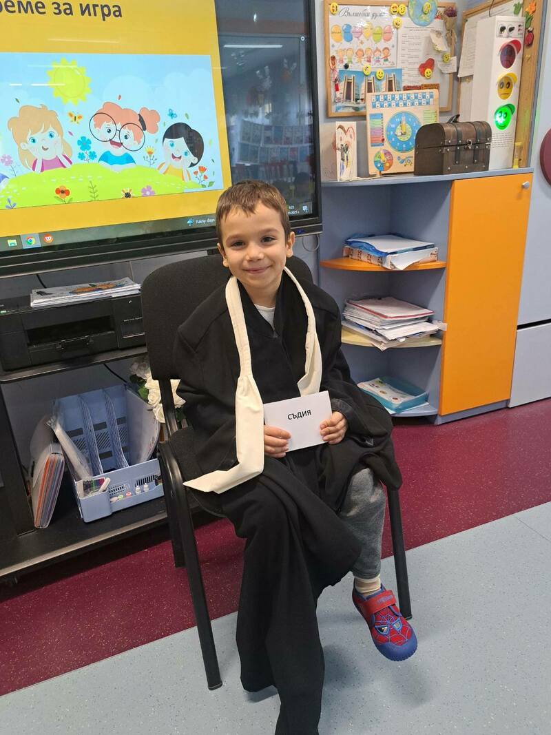 Малките любопитковци с голям интерес участваха в разиграване на съдебен процес, като влязоха в ролите на съдия, адвокат, полицаи, прокурор и заседатели. Така научиха нови понятия, свързани с работата на съда, и осъзнаха колко важни са справедливостта, честността и отговорността. С ентусиазъм децата облякоха съдийската тога и дори изпробваха чукчето в действие.