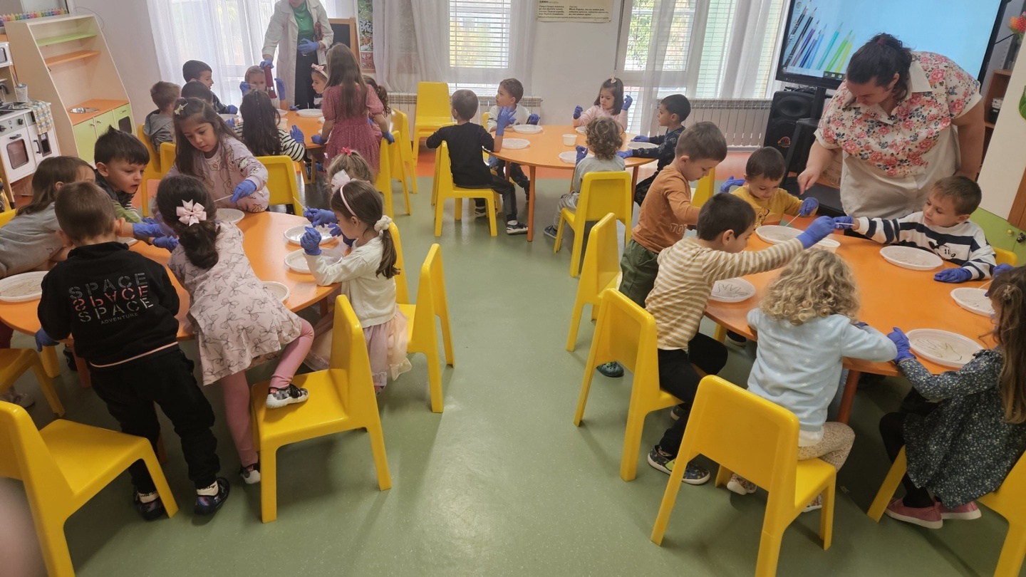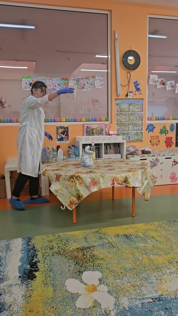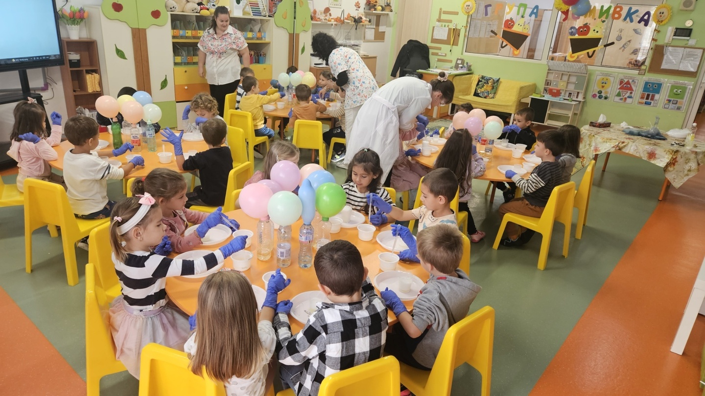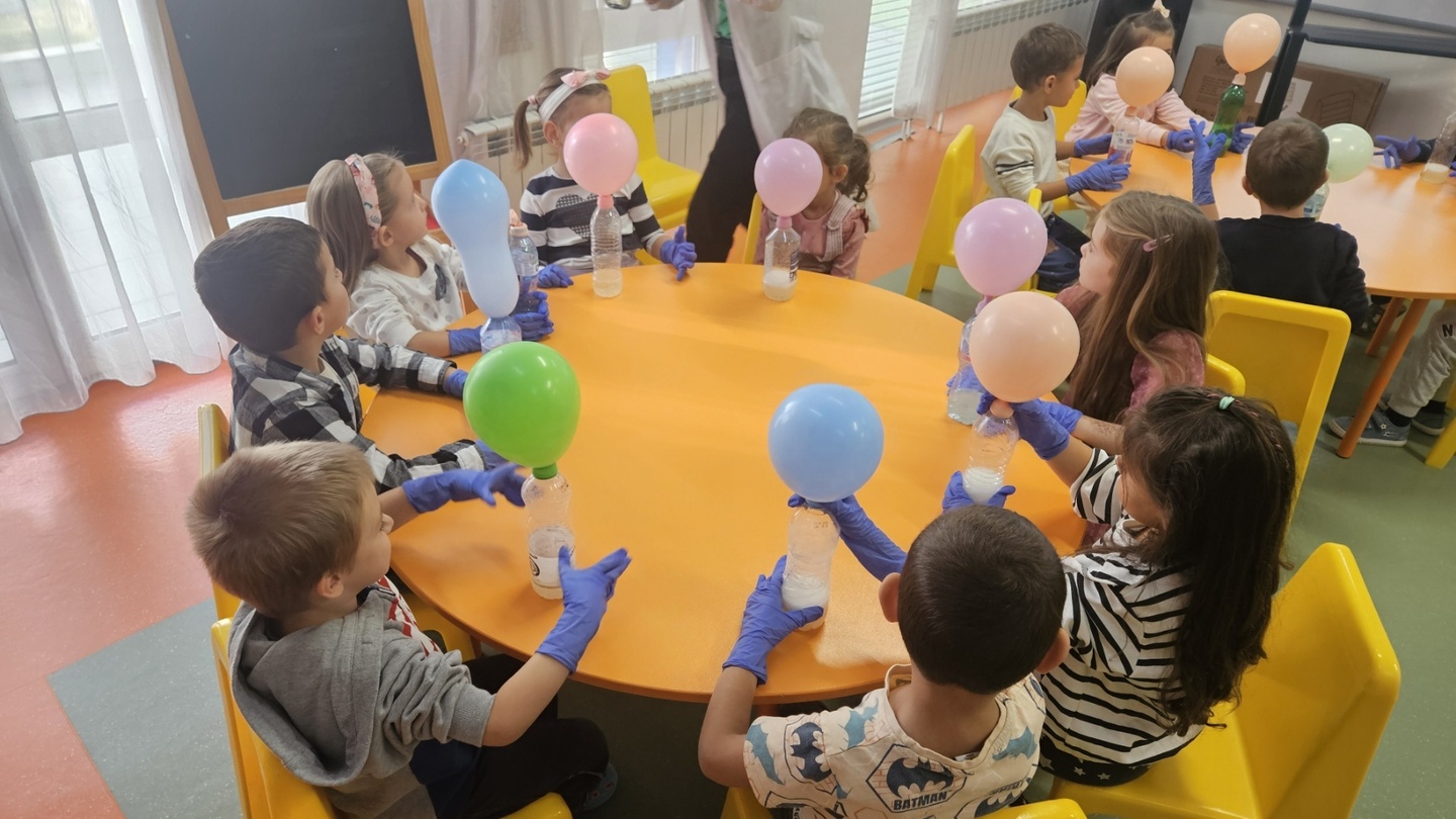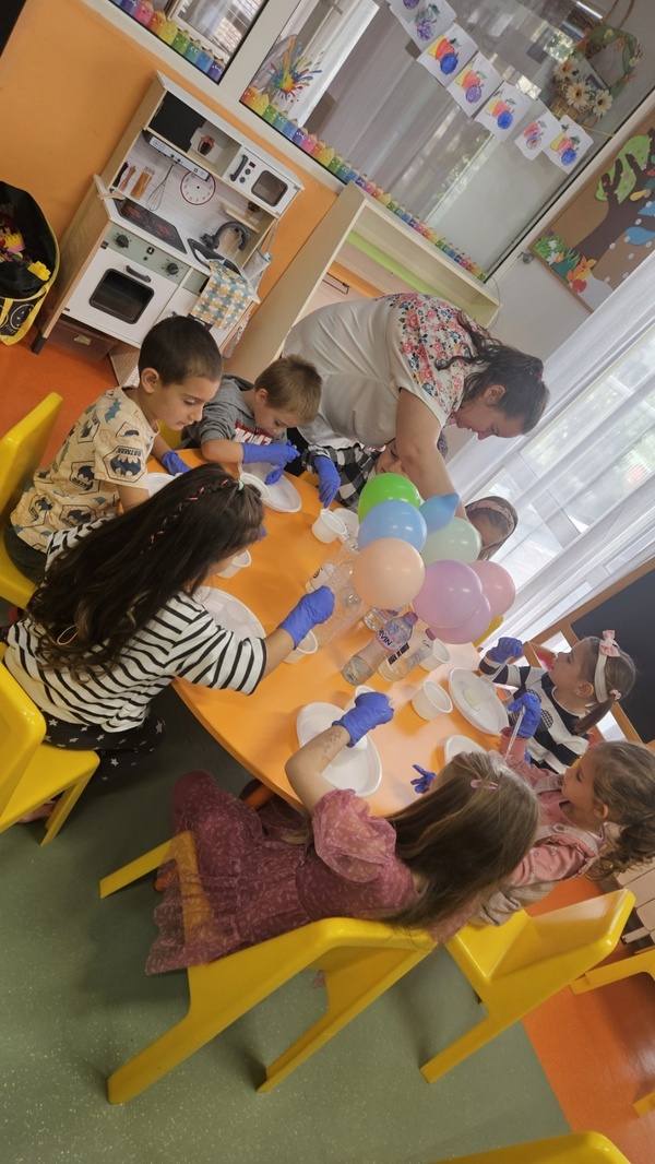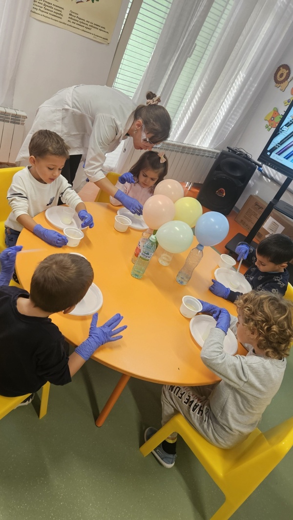 Те запознаха децата с интересна информация: какво е химия, химична реакция, как се използва тя в правенето на хигиенни продукти и още много любопитни факти. Малките експериментатори, изключително въодушевени, сложиха ръкавици и се захванаха със своите първи опити в химията. Резултатите ги направиха много щастливи!