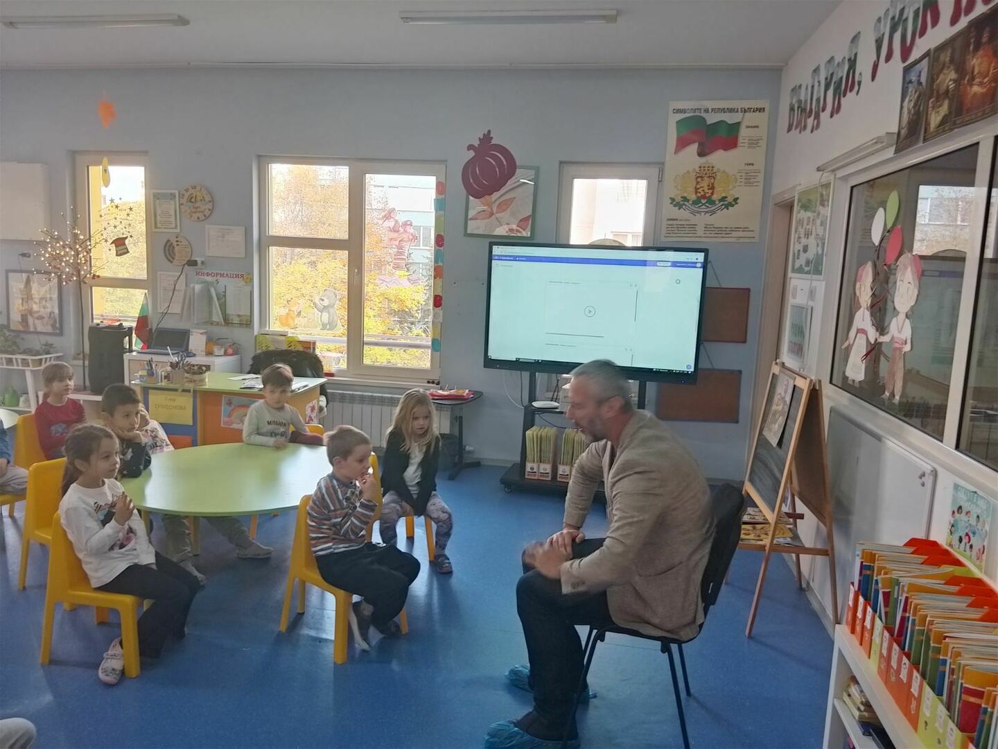 ВходДнес (22.10.) на гости ни беше бащата на Александър - Георги Серафимов, основател и преподавател на чуждо езикова академия. Той запозна децата със своята професия по разбираем и забавен начин.