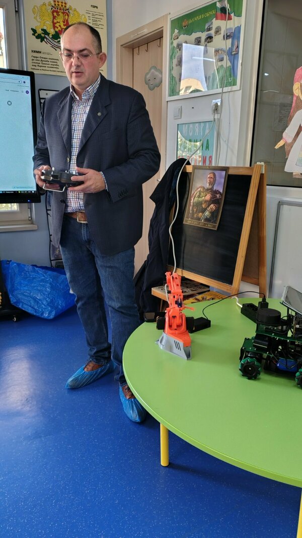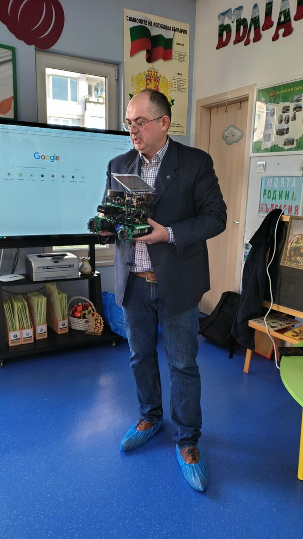 На гости ни беше таткото на Надя, г-н Владимир Христов, доцент във факултета по Автоматика и ръководител на катедра АЕЗ и на клуба по Роботика към Техническия Университет.