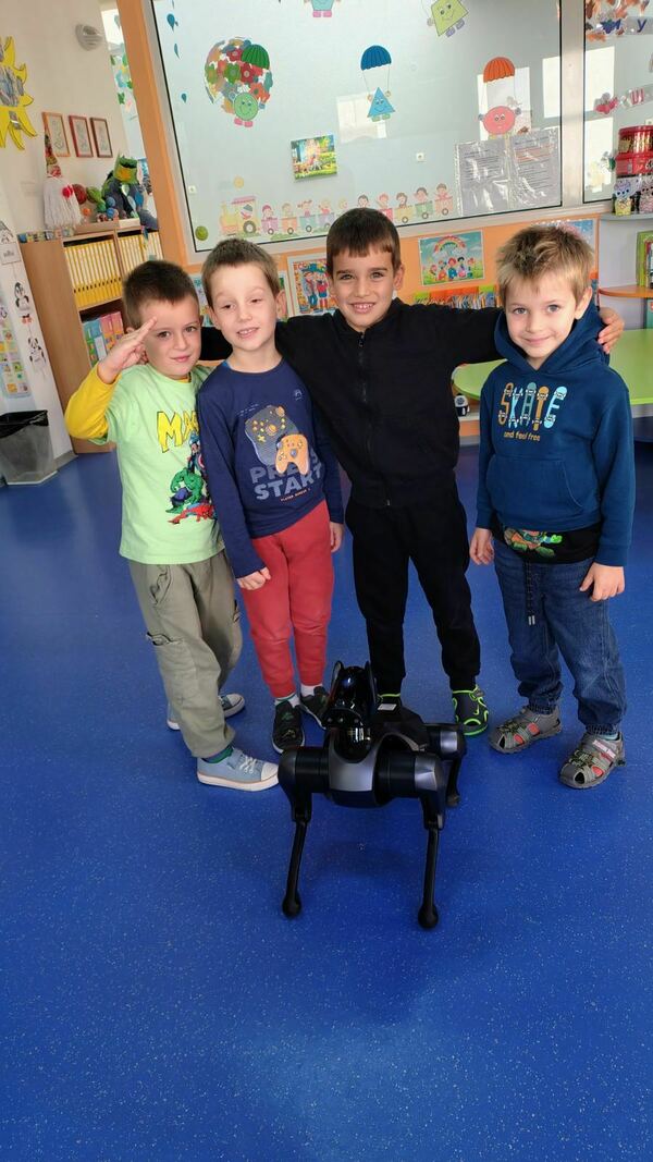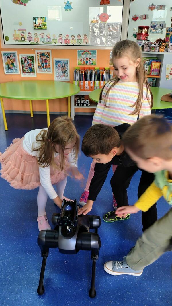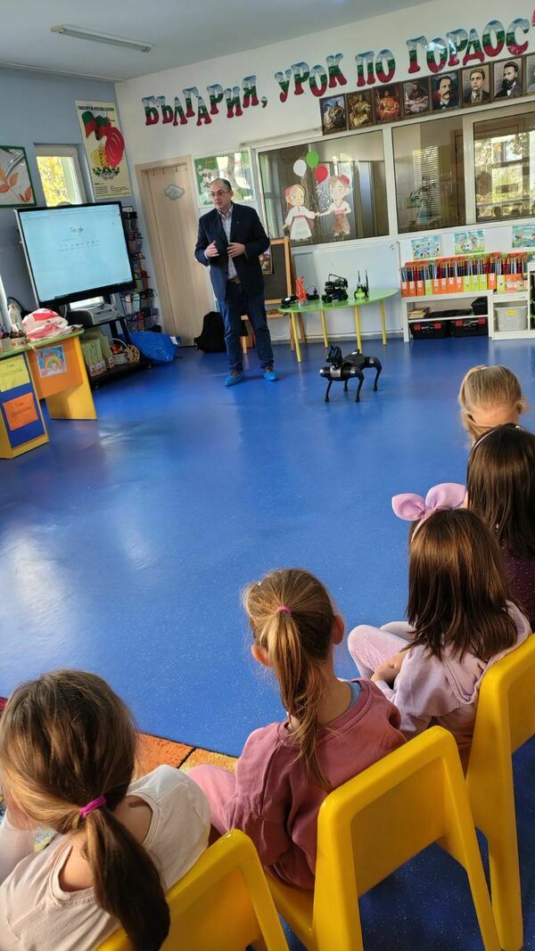 Разказа на децата за роботиката - от къде идва думата "робот", трите основни закона в роботиката, видовете роботи и устройството им. Малките "слънчица" се запознаха с макети на роботи за индустрията, но най-голям интерес у тях предизвика голямото "Робо-куче".