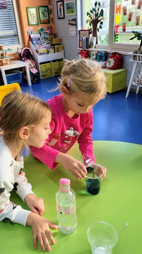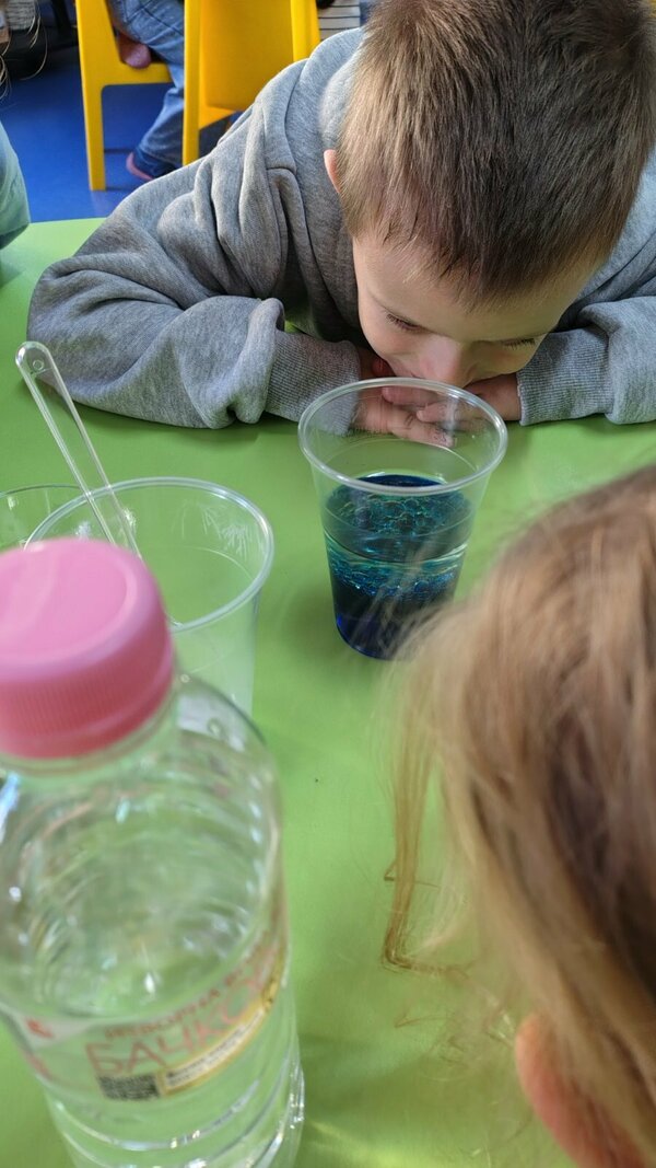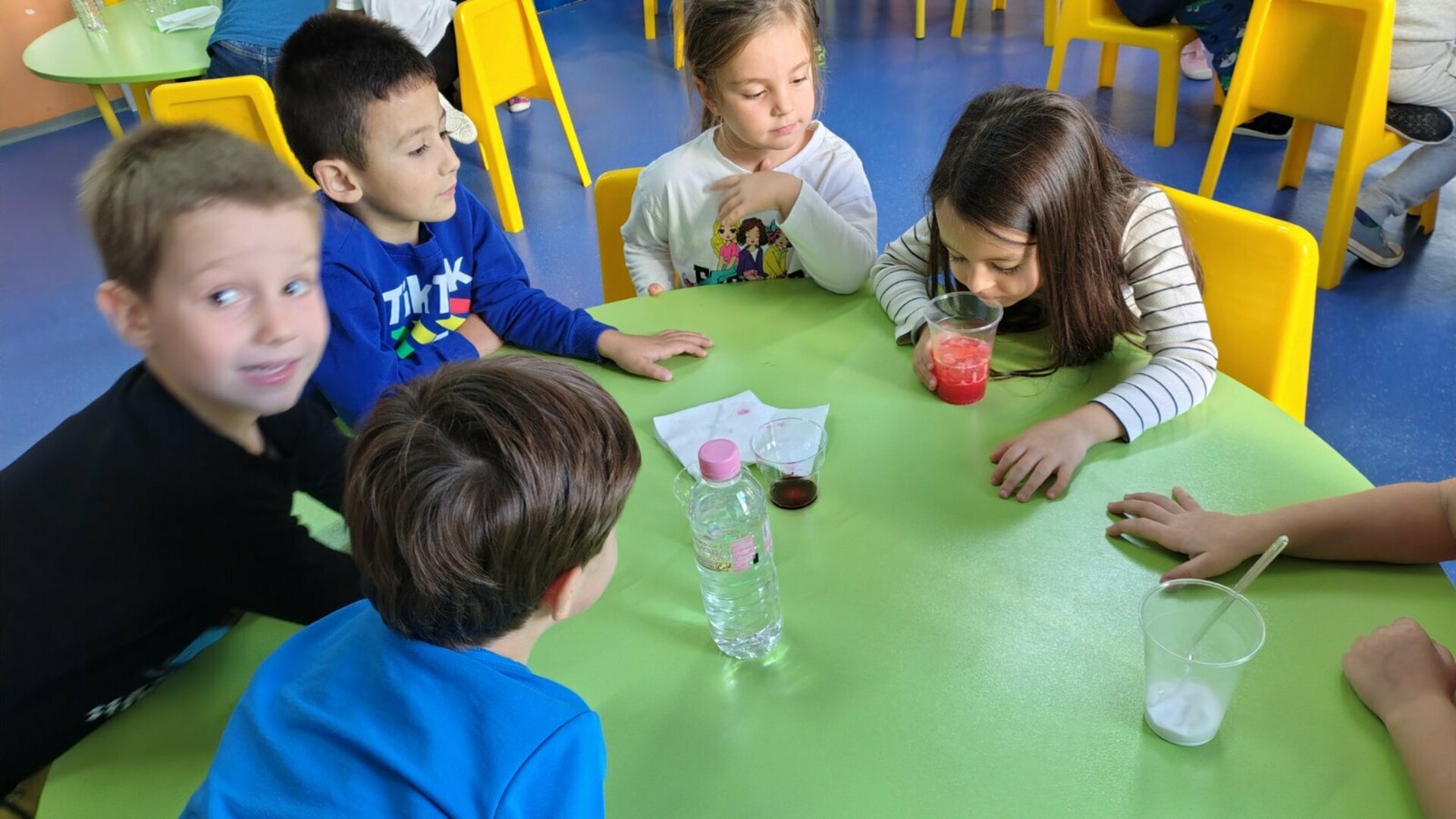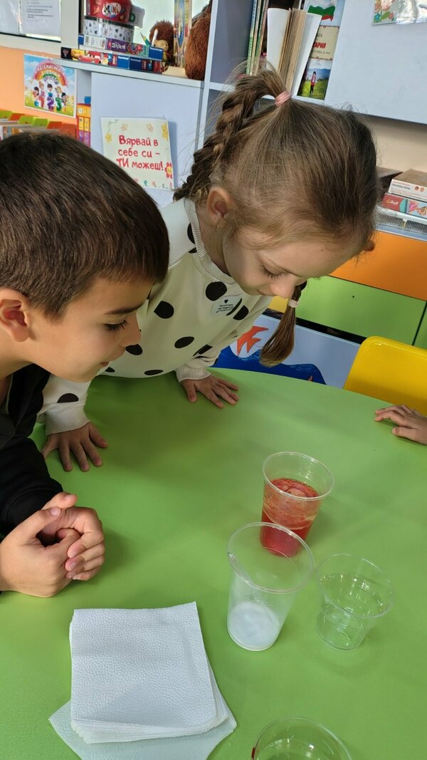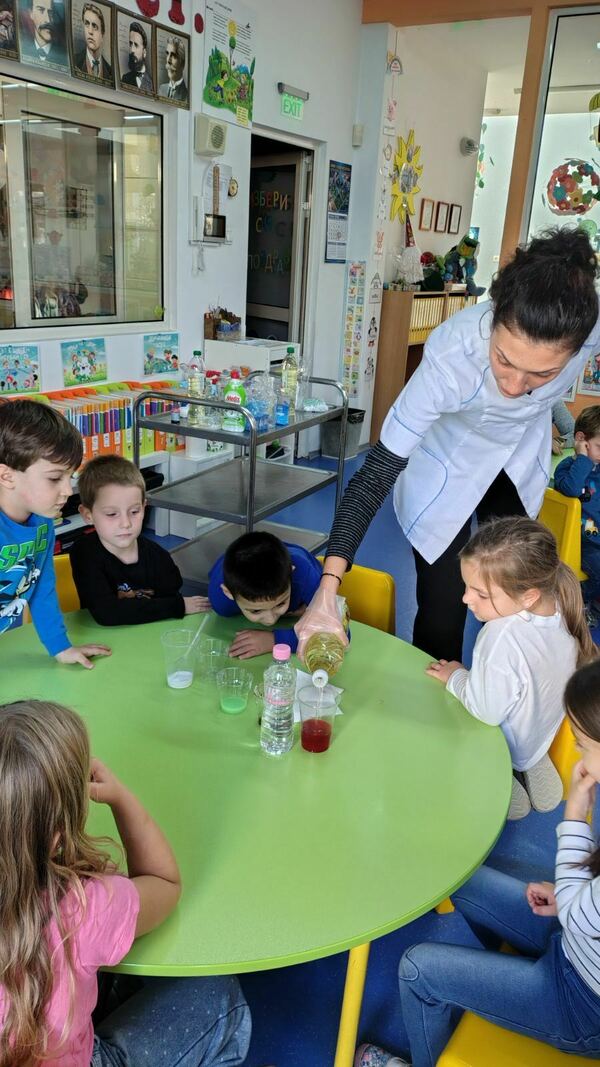 Днес децата се потопиха в света на магията. С огромно вълнение и много ентусиазъм се включиха в множеството опити с вода, сода за хляб, цветни бои, олио и разбраха за взаимодействията по между им.