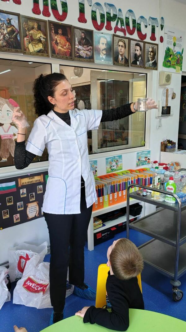 В последния ден от нашата седмица на професиите, в трета А група ни гостува майката на Боги, г-жа Дебора Динкова, преподавател по биология и химия.