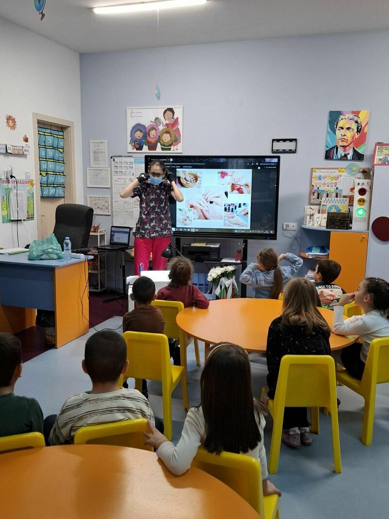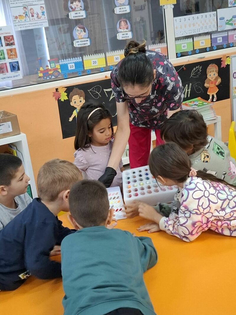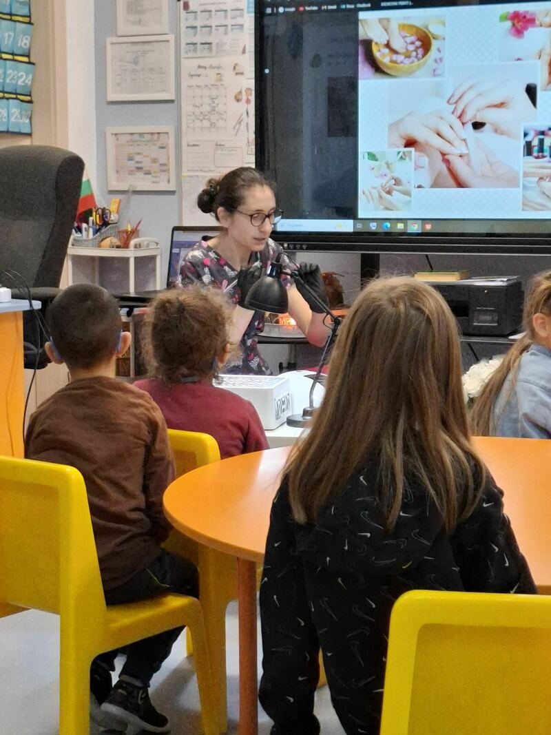 Тя показа на децата всички инструменти и материали, които използва в работата си и обясни всяка стъпка – от грижата за ноктите до финалния щрих на блясък.